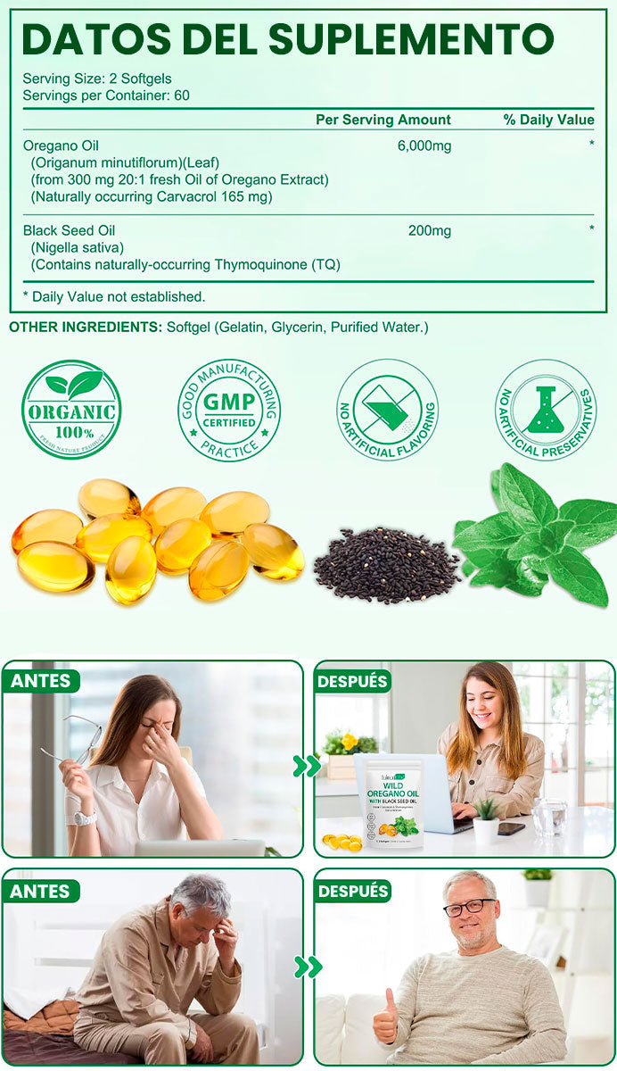 120 Cápsulas de oregano con semilla negra💊Resalta defensa inmune + combinación de ingredientes naturales potentes